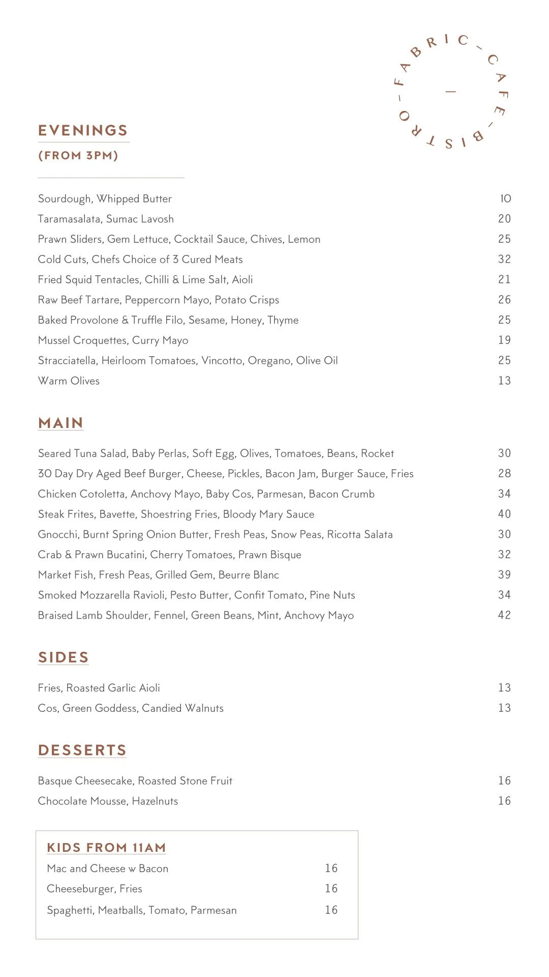 The menu is subject to availability, seasonal changes, or pricing changes at any time without notice.